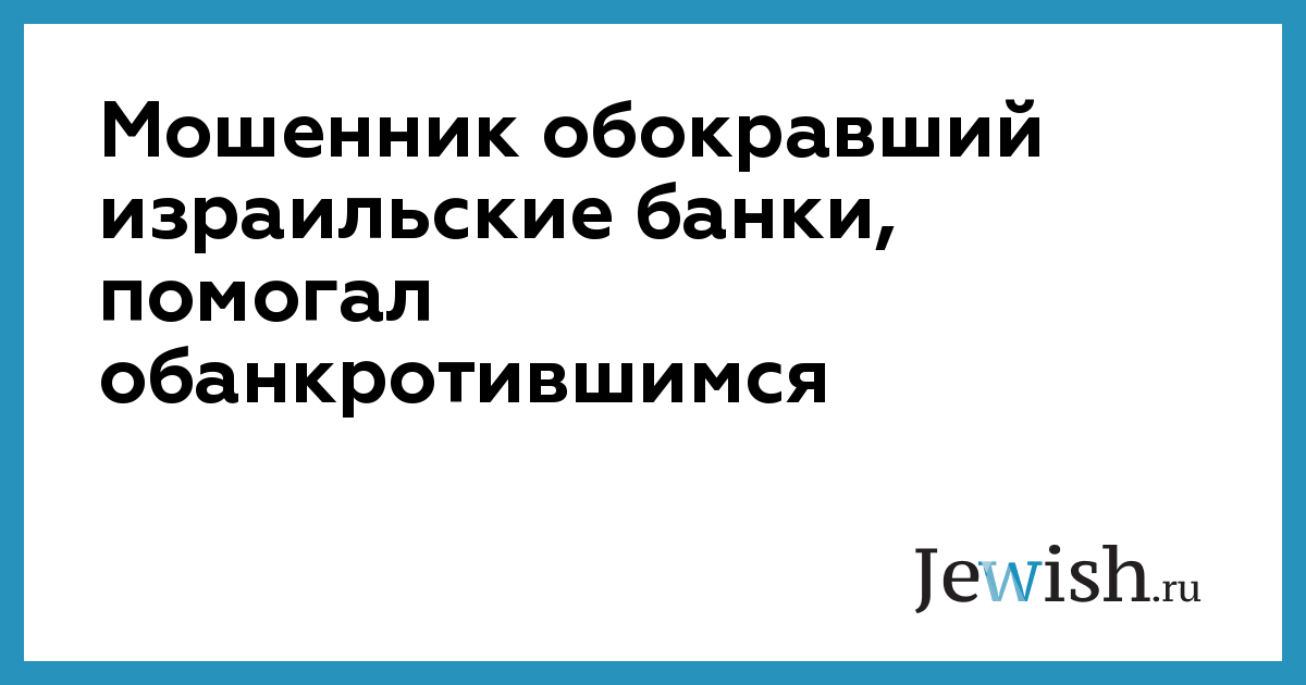 Мошенник обокравший израильские банки, помогал обанкротившимся