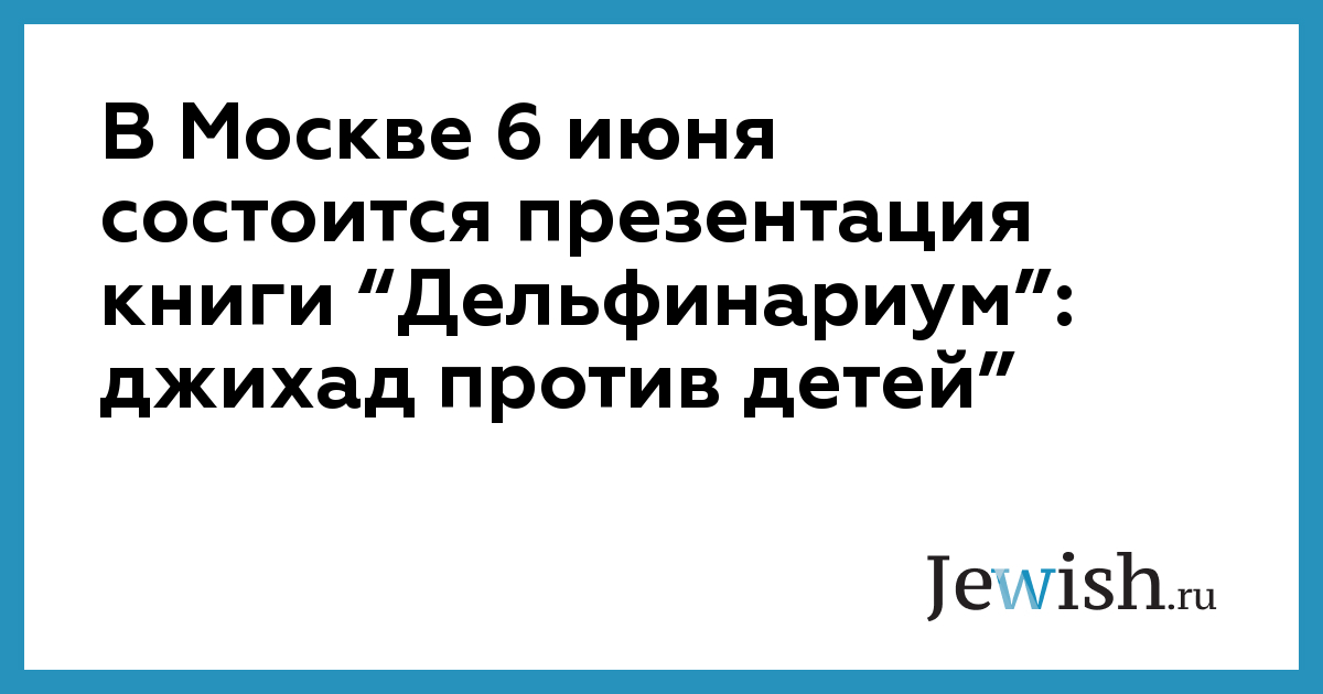 В Москве 6 июня состоится презентация книги “Дельфинариум”: джихад против детей”
