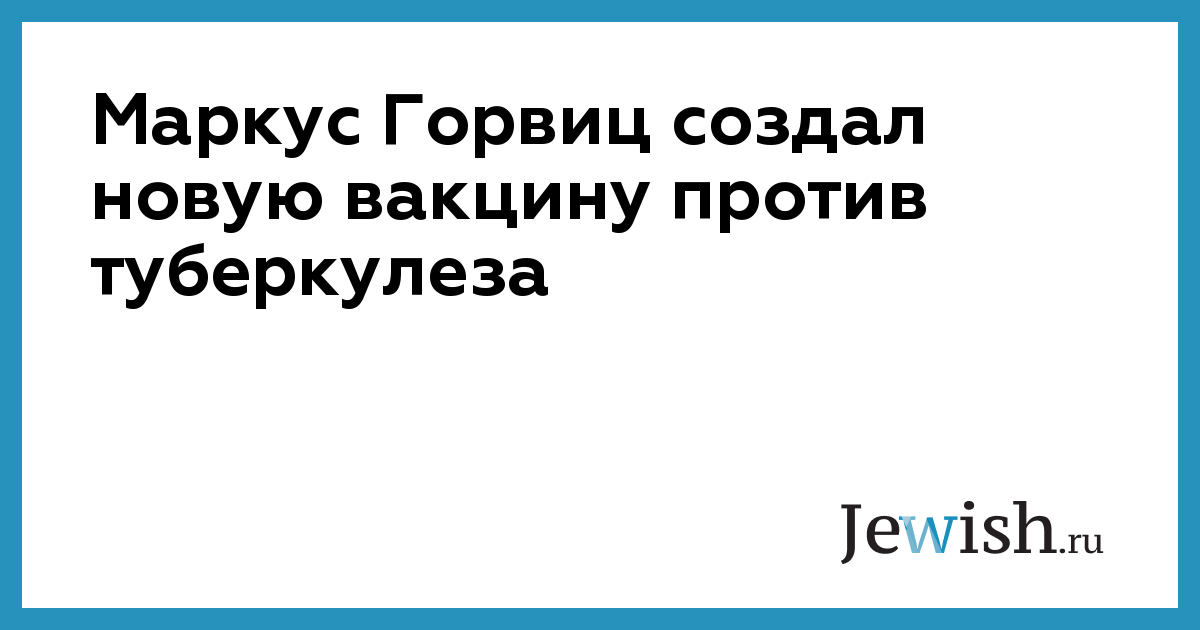 Маркус Горвиц создал новую вакцину против туберкулеза