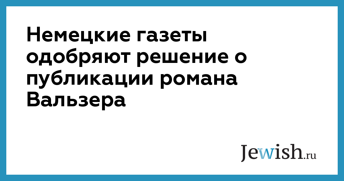 Немецкие газеты одобряют решение о публикации романа Вальзера