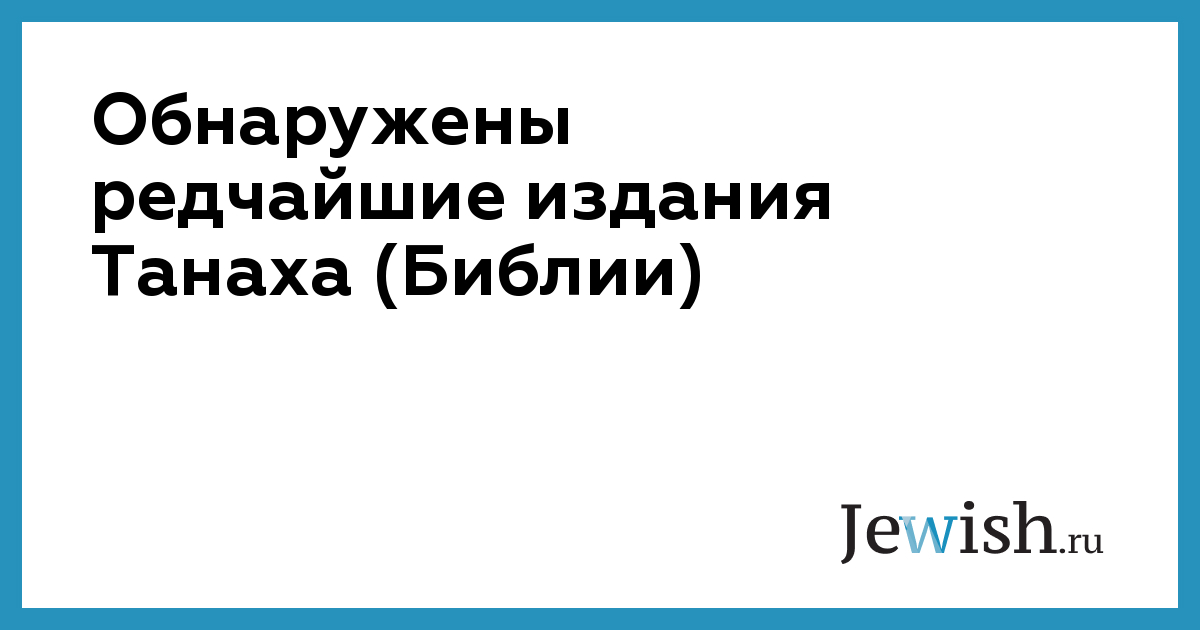 Обнаружены редчайшие издания Танаха (Библии)