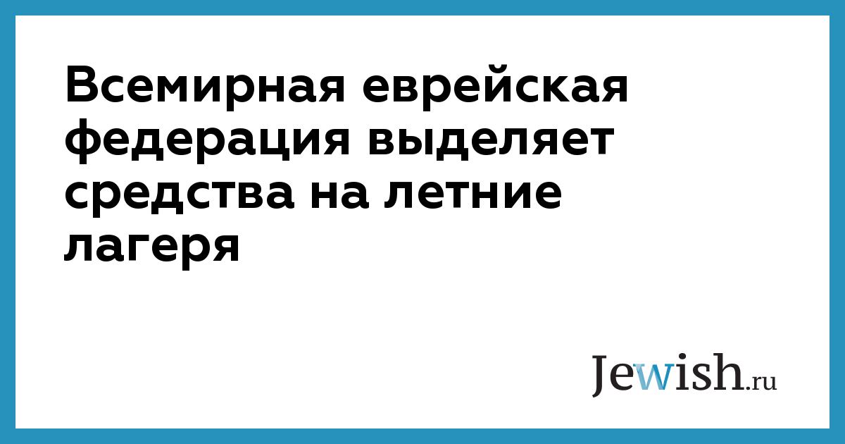Всемирная еврейская федерация выделяет средства на летние лагеря