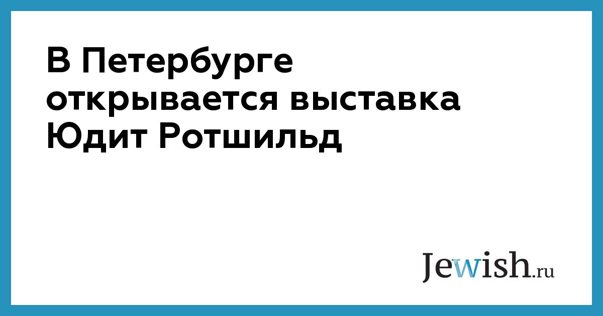 В Петербурге открывается выставка Юдит Ротшильд