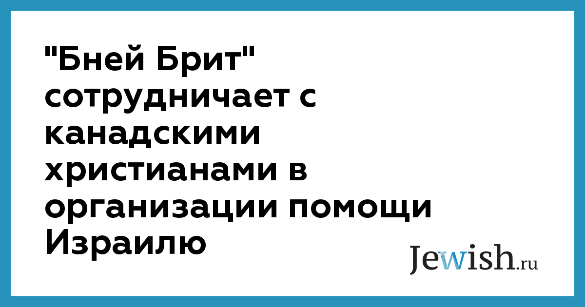 "Бней Брит" сотрудничает с канадскими христианами в организации помощи Израилю