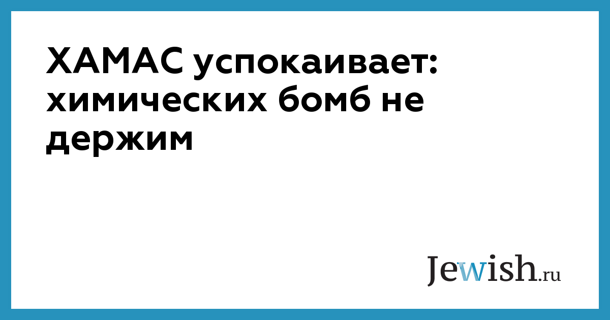 Движение исламских фундаменталистов ХАМАС опровергло сообщения телеканала Channel Two о разработке плана терактов против израильтян с использованием химического оружия. По информации Channel Two, согласно имеющемуся в его распоряжении докладу, ХАМАС возобновит разработку бомб с химической начинкой, несмотря на то, что ранее эта организация приняла решение отказаться от работ по изготовлению такого рода устройств. "Идея использования химических веществ при создании взрывных устройств не нова, но все эксперименты пока завершились безрезультатно", — говорится в докладе. — "Химические вещества теряют эффективность в результате повышения температуры, вызванного взрывом, и обычно мы использовали довольно простые вещества. Но когда в нашем распоряжении окажется новая технология использования подобных материалов, это откроет новые возможности для осуществления, с помощью Аллаха, терактов с участием камикадзе". В докладе говорится также о том, что цель ХАМАС — создать оружие, в результате применения которого во время взрыва те, кто находится поблизости, будут уничтожены сразу же, а оставшиеся в живых погибнут от химического воздействия. ХАМАС взяла на себя ответственность за многие теракты с участием камикадзе, совершенные против израильских граждан.