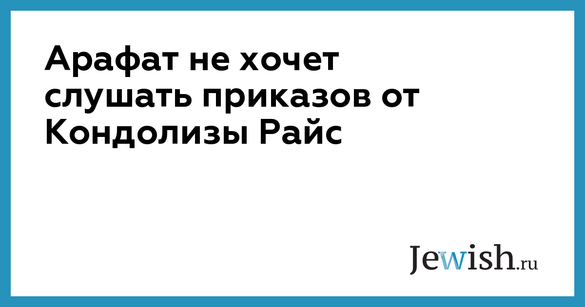 Глава Палестинской автономии Ясир Арафат выступил с резким комментарием по поводу обвинительных замечаний советника президента США по национальной безопасности Кондолиззы Райс. По словам Арафата, чиновник американской администрации не имеет права диктовать палестинцам условия существования их будущего государства. "Мы делаем то, что считаем необходимым для наших людей, и мы не намерены слушать приказы от кого-то со стороны", — сказал Арафат, выступая в одной из школ в Рамалле. Райс в интервью корреспонденту San Jose Mercury News заявила, что президент Джордж Буш изложит свое видение мирного урегулирования палестино-израильского конфликта на следующей неделе. Однако американская администрация не считает нынешнюю палестинскую власть основой будущего государства. "Откровенно говоря, палестинская администрация, погрязшая в коррупции и тесно связанная с террором, не может быть базисом палестинского государства", — сказала Райс. В то же время значительную часть вины за все произошедшее Райс возложила и на Израиль. По мнению советника президента США, "израильтяне должны будут принять много тяжелых решений, демонстрирующих их стремление к миру".