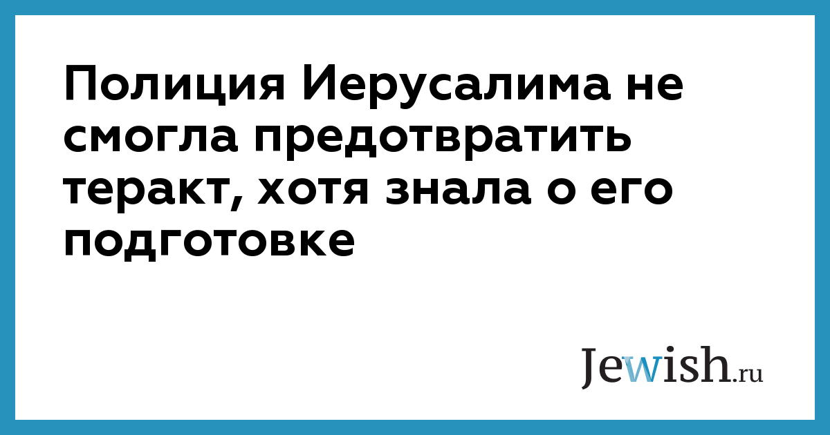 Полиция Иерусалима не смогла предотвратить теракт, хотя знала о его подготовке