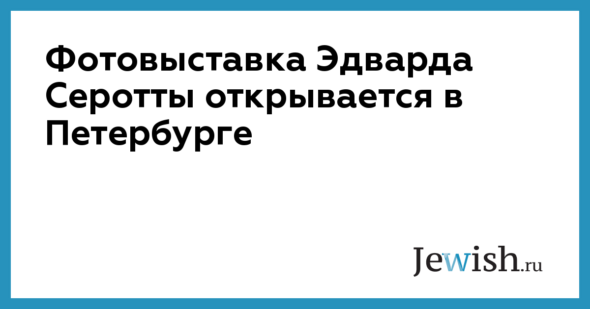 Фотовыставка Эдварда Серотты открывается в Петербурге