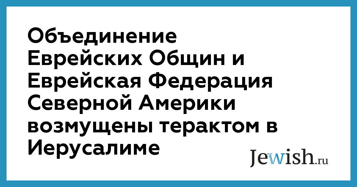 Объединение Еврейских Общин и Еврейская Федерация Северной Америки возмущены терактом в Иерусалиме