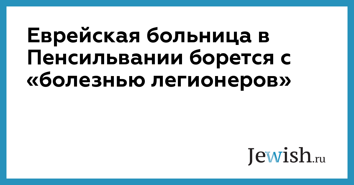 Еврейская больница в Пенсильвании борется с «болезнью легионеров»