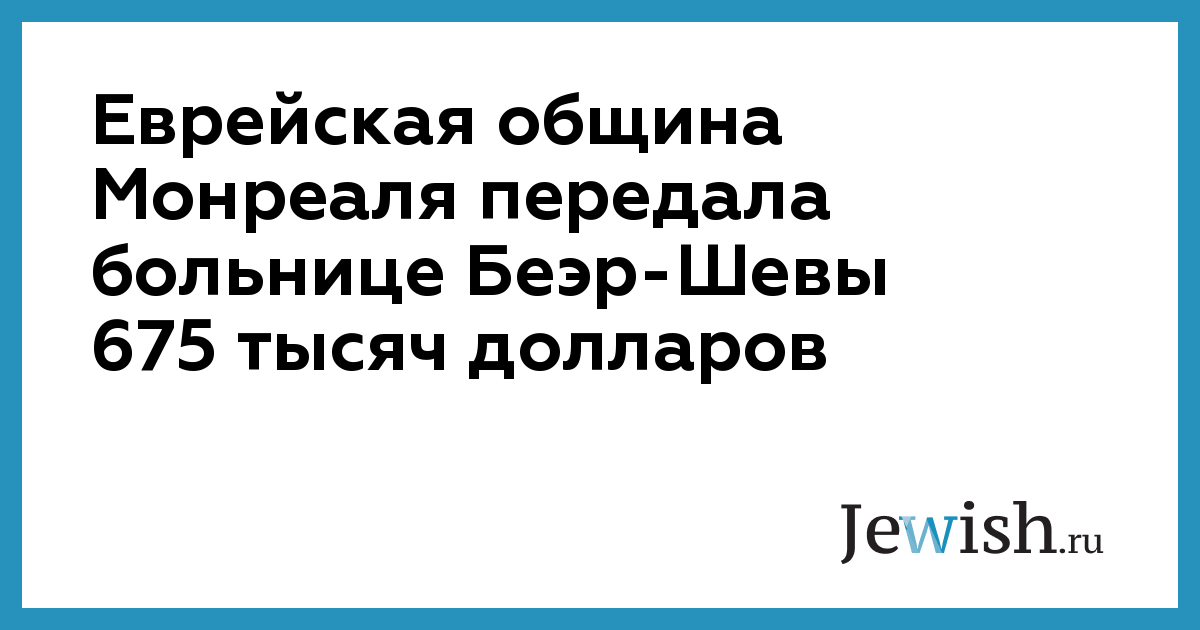 Еврейская община Монреаля передала больнице Беэр-Шевы 675 тысяч долларов