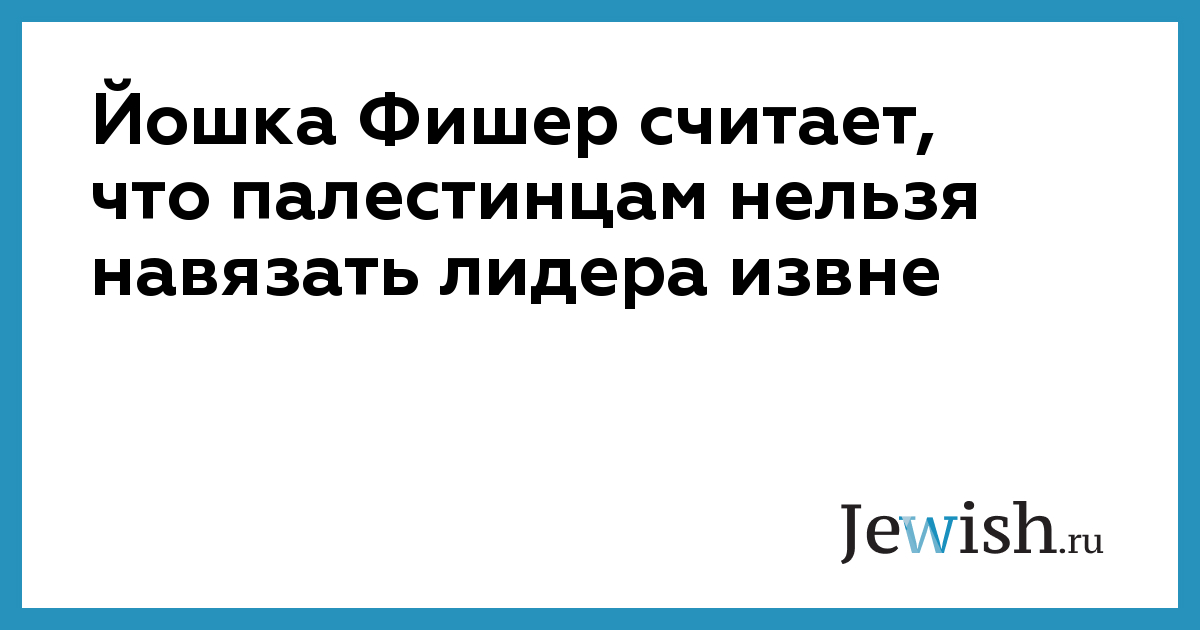 Йошка Фишер считает, что палестинцам нельзя навязать лидера извне