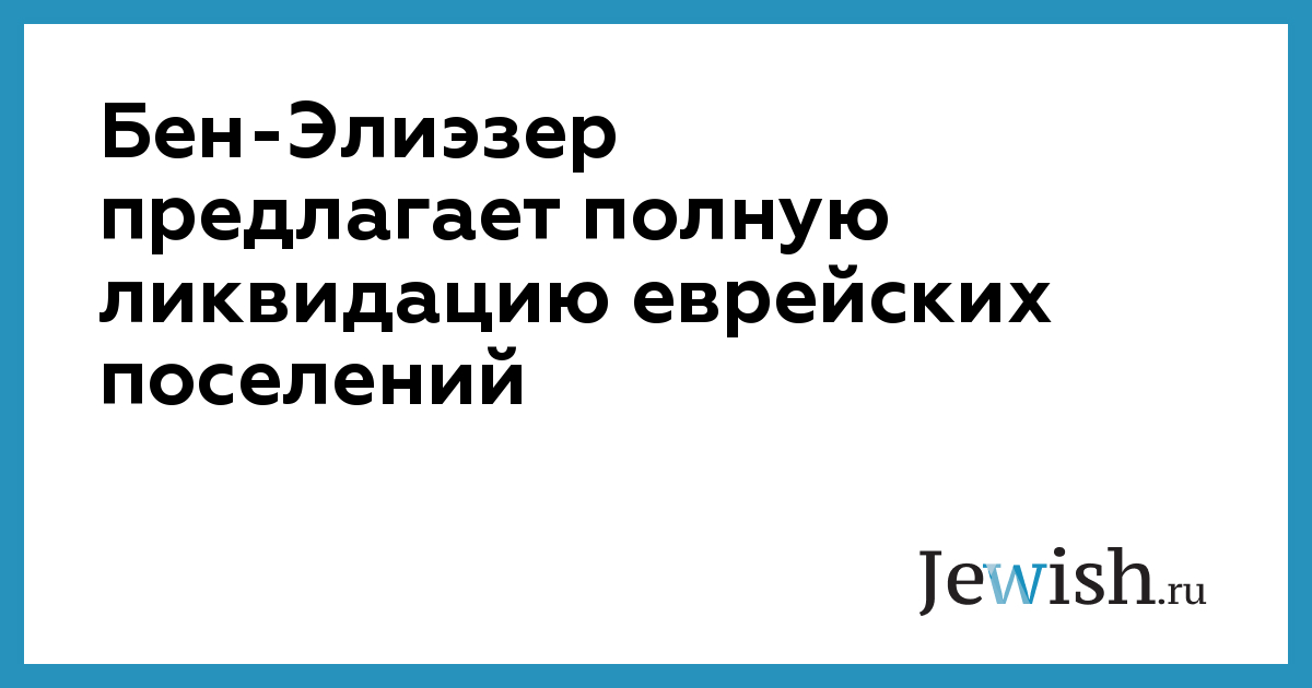Бен-Элиэзер предлагает полную ликвидацию еврейских поселений