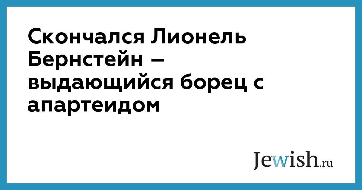 Лионель Бернстейн, один из видных лидеров борьбы с апартеидом в Южной Африке, скончался в возрасте 83 лет в английском городе Оксфорде. Будучи одним из ведущих активистов коммунистической партии ЮАР, Бернстейн обладал незаурядным талантом политического памфлетиста. Им создано множество текстов, ставших классикой национального освободительного движения страны. Находясь в оппозиции к тогдашнему репрессивному режиму, правившему Южно-Африканской республикой, Бернстайн до 1990-го года был вынужден провести ряд лет за границей в вынужденном изгнании. Он был одним из инициаторов создания в 1955 году Хартии Свободы, которая на многие годы стала политическим манифестом Африканского Национального Конгресса. Вместе с Нельсоном Манделой он предстал в качестве обвиняемого перед двумя громкими судебно-политическими процессами. На втором из этих процессов Мандела был приговорен к пожизненному заключению (как известно, он отбыл в тюрьме 27 лет), обнако Бернстейн был оправдан из-за недостатка улик, изобличающих его связи с национально-освободительным движением. Последние годы Бернстейн жил в Великобритании.