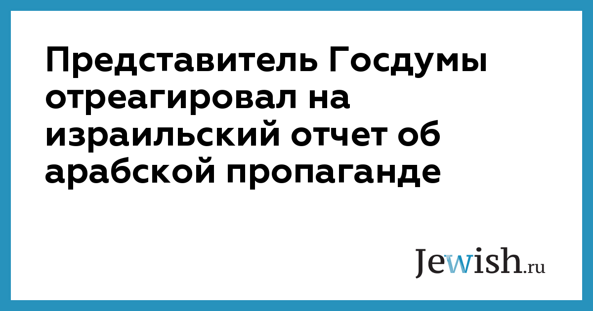 Представитель Госдумы отреагировал на израильский отчет об арабской пропаганде