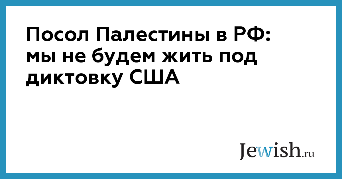 Посол Палестины в РФ: мы не будем жить под диктовку США