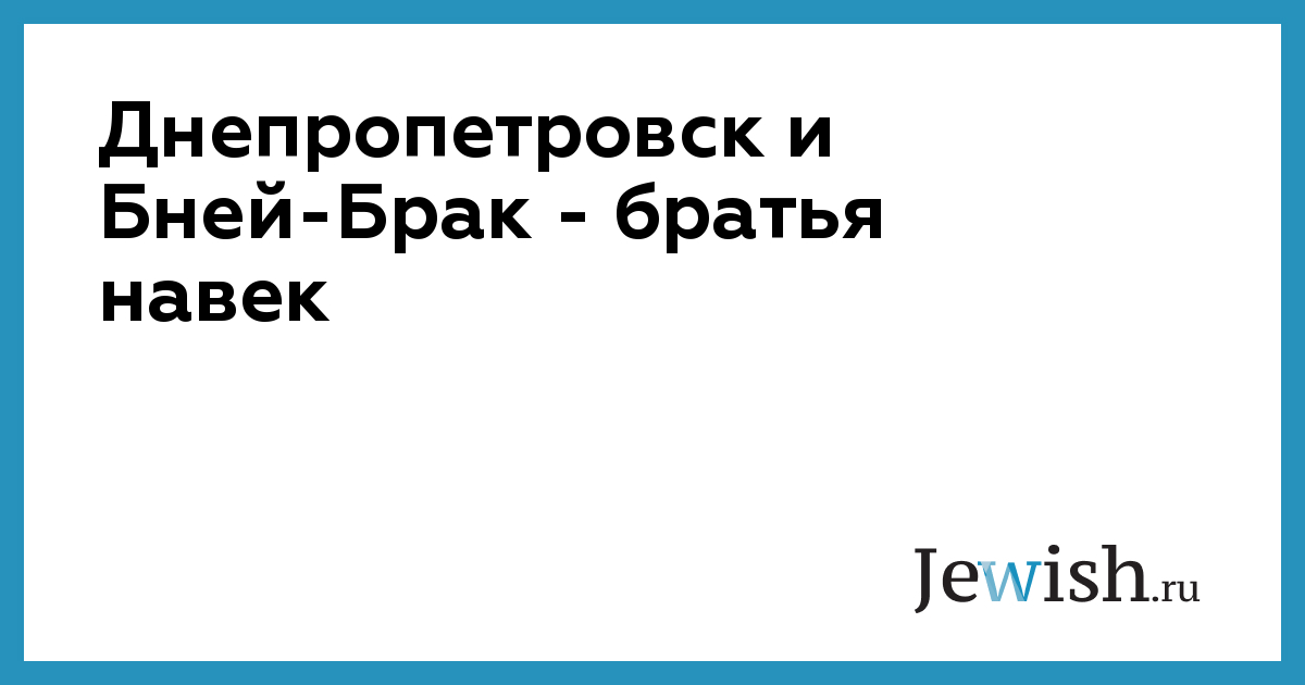 Днепропетровск и Бней-Брак — братья навек