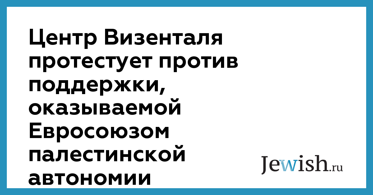 Центр Визенталя протестует против поддержки, оказываемой Евросоюзом палестинской автономии