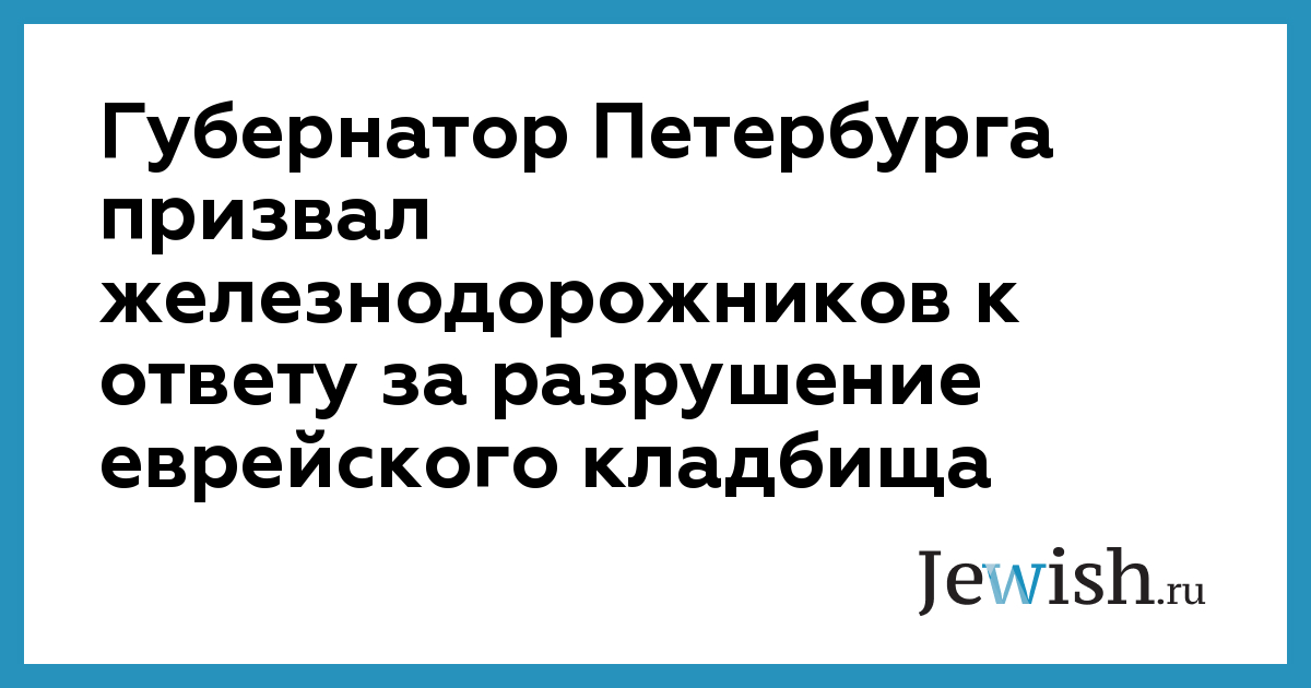 Губернатор Петербурга призвал железнодорожников к ответу за разрушение еврейского кладбища