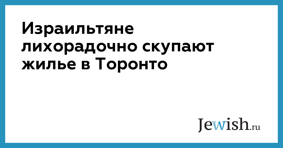 Израильтяне лихорадочно скупают жилье в Торонто