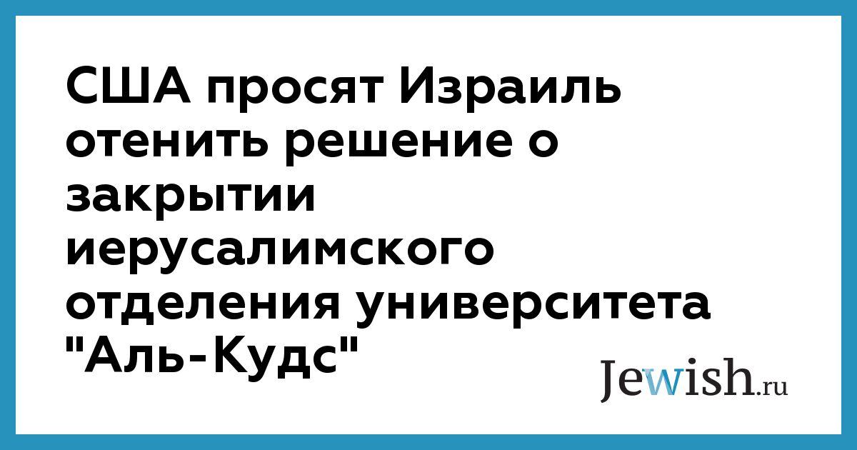США просят Израиль отенить решение о закрытии иерусалимского отделения университета "Аль-Кудс"