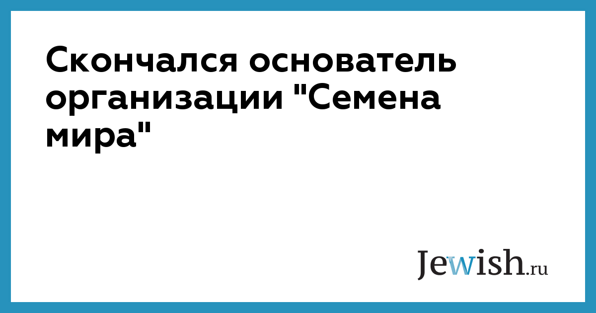Скончался основатель организации "Семена мира"
