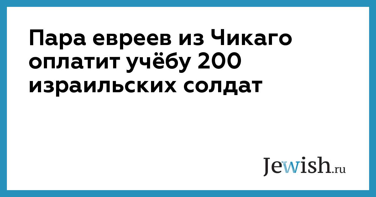 Пара евреев из Чикаго оплатит учёбу 200 израильских солдат