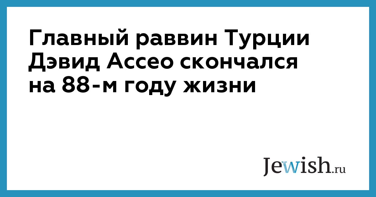 Главный раввин Турции Дэвид Ассео скончался на 88-м году жизни