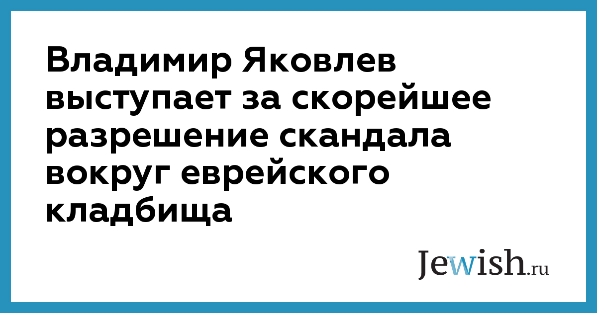 Владимир Яковлев выступает за скорейшее разрешение скандала вокруг еврейского кладбища