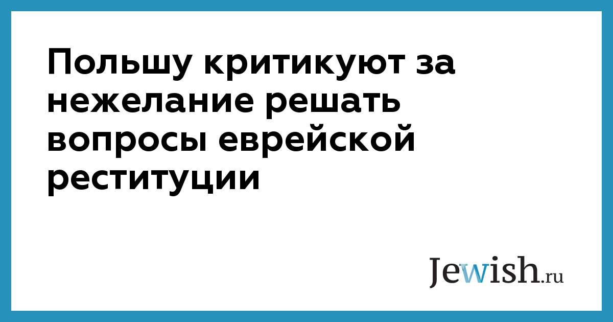 Польшу критикуют за нежелание решать вопросы еврейской реституции