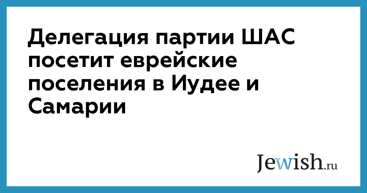 Делегация партии ШАС посетит еврейские поселения в Иудее и Самарии