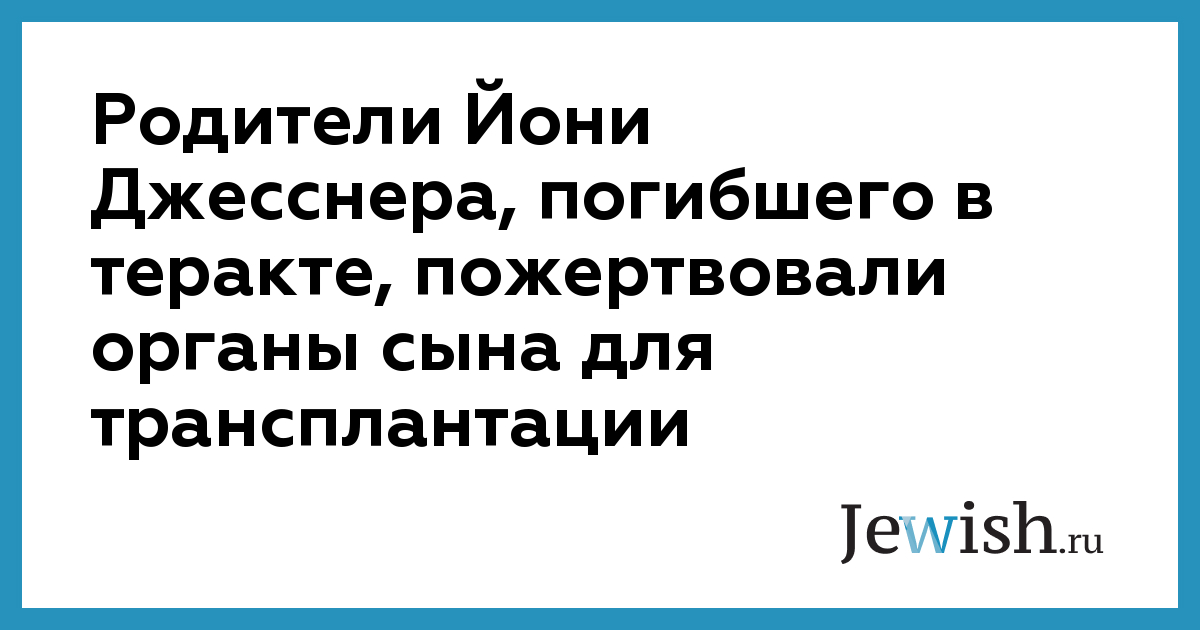 Родители Йони Джесснера, погибшего в теракте, пожертвовали органы сына для трансплантации