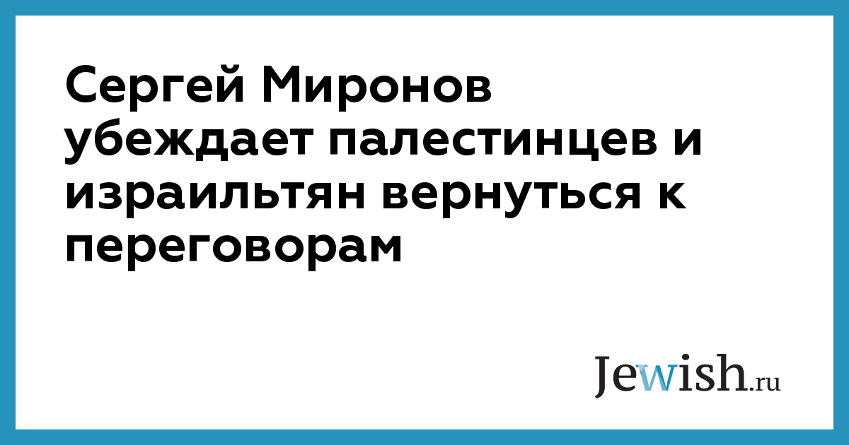 Сергей Миронов убеждает палестинцев и израильтян вернуться к переговорам