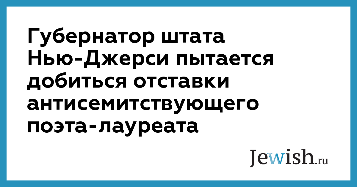 Губернатор штата Нью-Джерси в настоящее время рассматривает законные возможности отстранения от должности поэта-лауреата штата, который приобрел скандальную известность, опубликовав стихотворение с инсинуациями в адрес Израиля. Основная мысль этих виршей в том, что израильтяне, работавшие в зданиях Всемирного торгового центра, якобы знали заранее о терактах 11 сентября и спаслись, не выйдя на работу в этот день. Для того, чтобы губернатор смог уволить со своего поста злополучного поэта-лауреата раньше окончания двухлетнего срока, на который он был назначен, требуется решение законодательного собрания штата, которое, как ожидается, будет принято на текущей неделе. В прошлом месяце губернатор Джеймс МакГриви официально обратился к поэту-лауреату Амири Барака с требованием добровольно уйти в отставку после скандального публичного чтения стихотворения "Кто-то поднял на воздух Америку" на поэтическом празднике при широком стечении публики, однако Барака отказался. Тогда губернатор попытался уволить его своим решением, однако генеральный прокурор отменил это постановление, поскольку оно входило в противоречие в действующим законодательством штата.