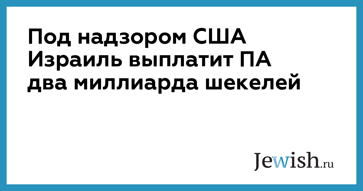 Под надзором США Израиль выплатит ПА два миллиарда шекелей