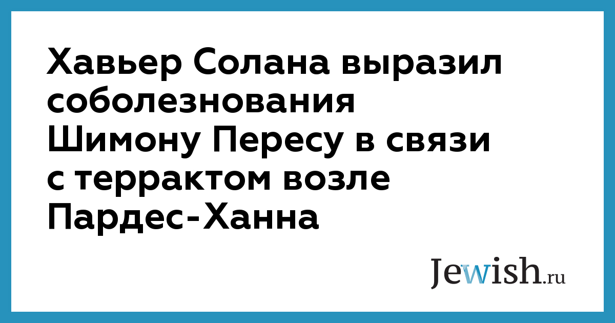 Хавьер Солана выразил соболезнования Шимону Пересу в связи с террактом возле Пардес-Ханна