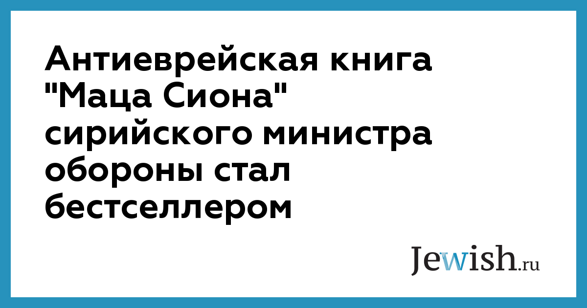 Антиеврейская книга "Маца Сиона" сирийского министра обороны стал бестселлером