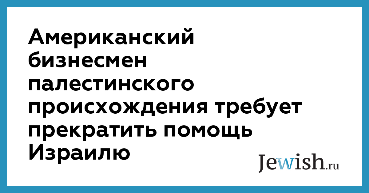 Американский бизнесмен палестинского происхождения требует прекратить помощь Израилю