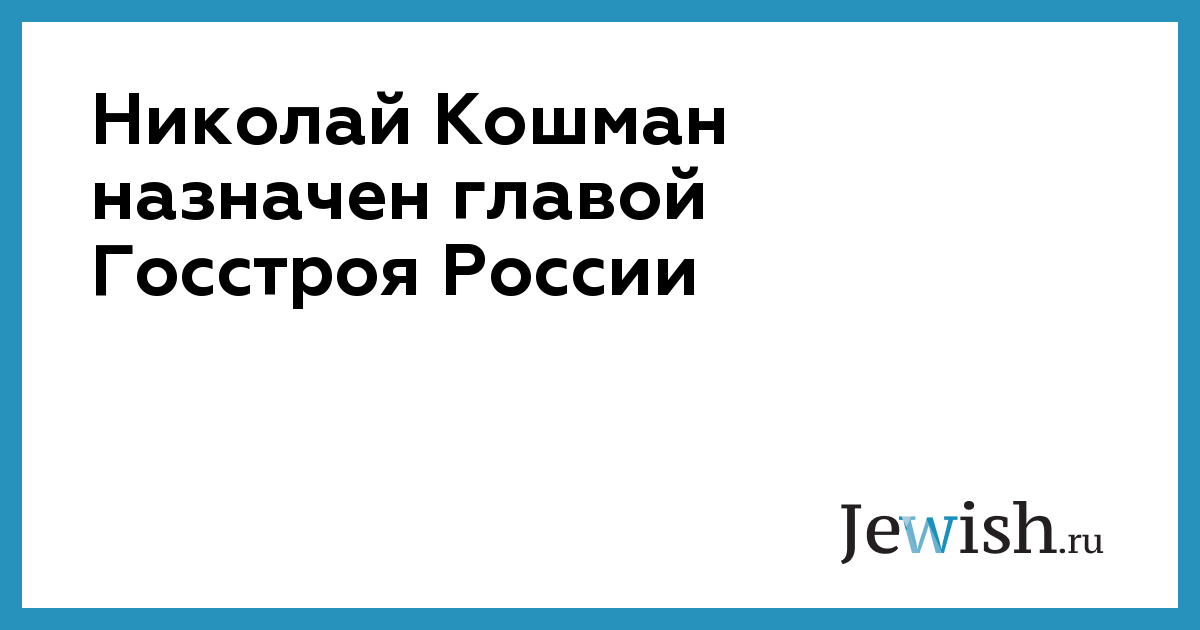 Николай Кошман назначен главой Госстроя России