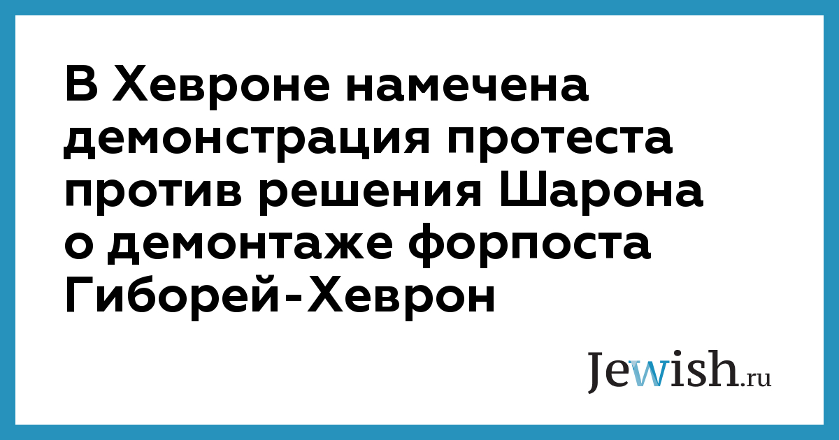 В Хевроне намечена демонстрация протеста против решения Шарона о демонтаже форпоста Гиборей-Хеврон
