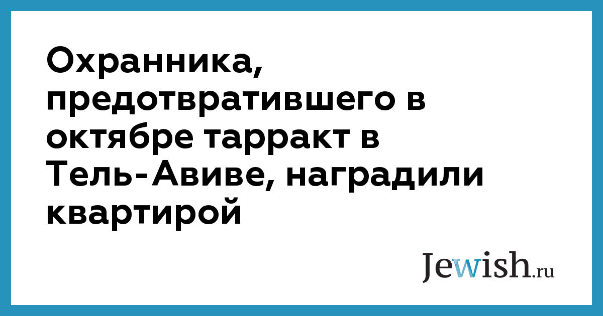 Охранника, предотвратившего в октябре тарракт в Тель-Авиве, наградили квартирой