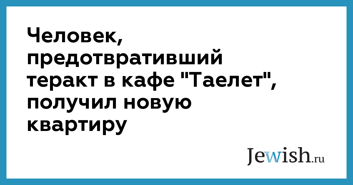 Человек, предотвративший теракт в кафе "Таелет", получил новую квартиру