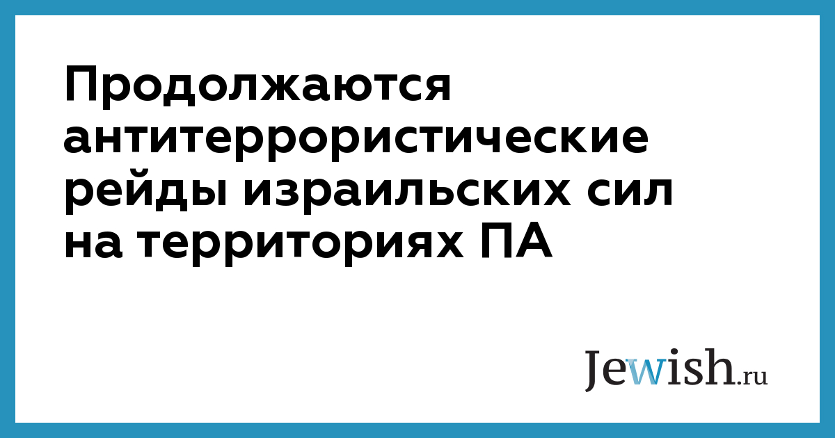 Продолжаются антитеррористические рейды израильских сил на территориях ПА