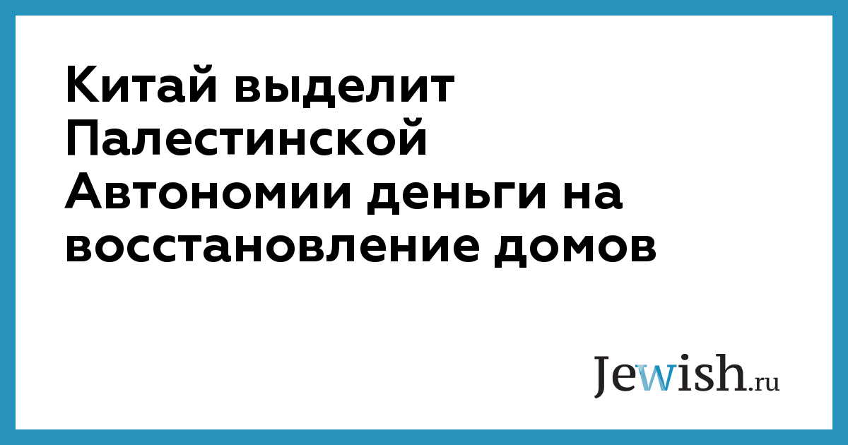 Китай выделит Палестинской Автономии деньги на восстановление домов