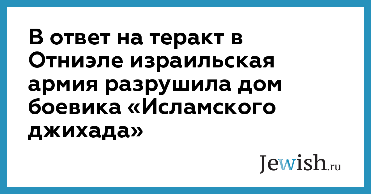 В ответ на теракт в Отниэле израильская армия разрушила дом боевика «Исламского джихада»