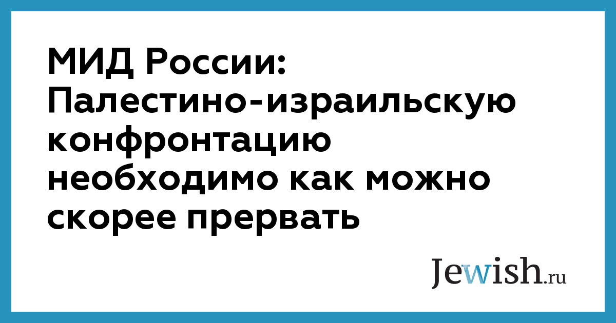 МИД России: Палестино-израильскую конфронтацию необходимо как можно скорее прервать
