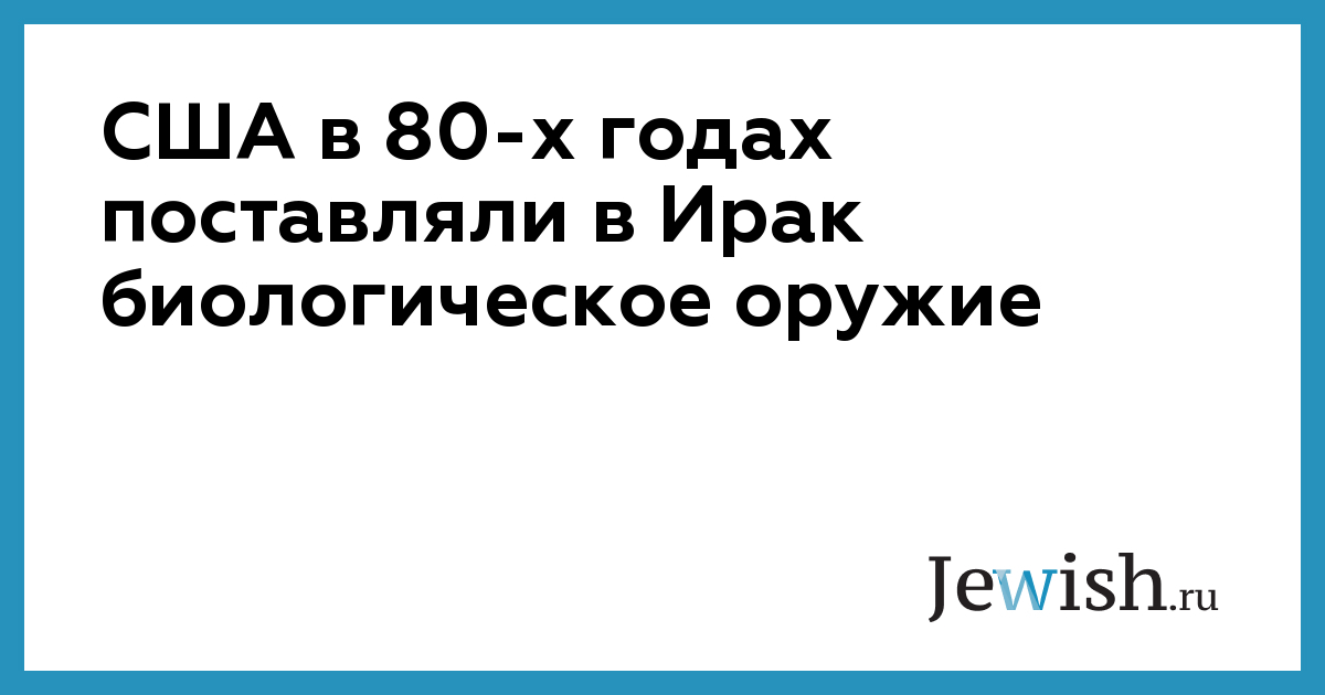 США в 80-х годах поставляли в Ирак биологическое оружие