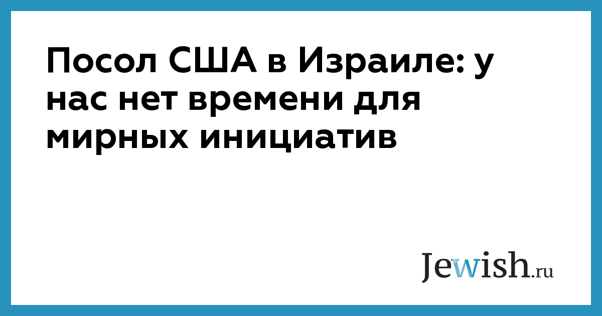 Посол США в Израиле: у нас нет времени для мирных инициатив