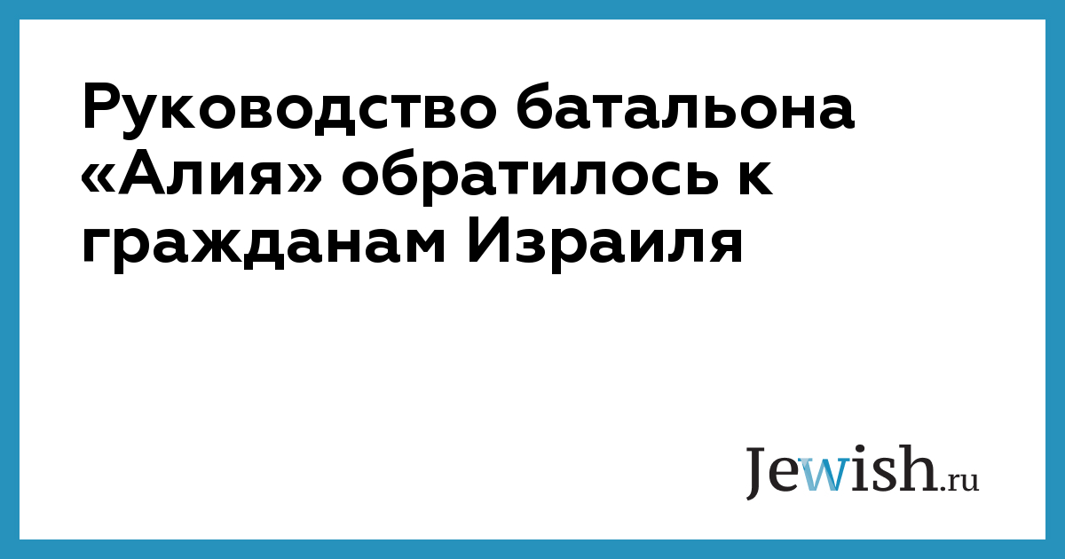 Руководство батальона «Алия» обратилось к гражданам Израиля