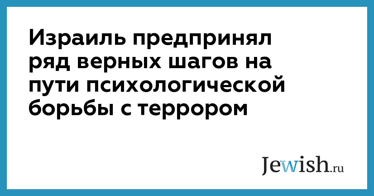 Израиль предпринял ряд верных шагов на пути психологической борьбы с террором